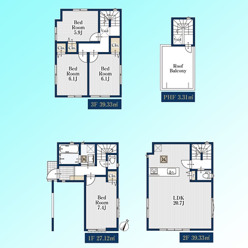 | 間取 | 4LDK~4LDK (LDK20.7帖、洋室7.4帖、洋室6.1帖、洋室6.1帖、洋室5.9帖) | ||