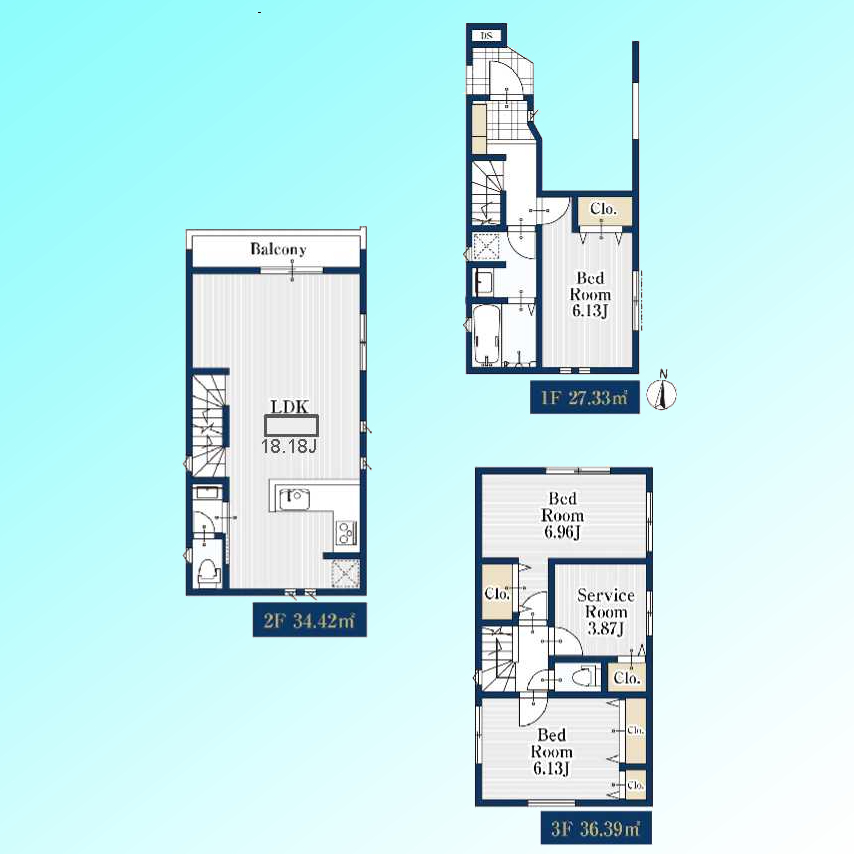 | 間取 | 3SLDK~3SLDK (LDK18.18帖、洋室6.96帖、洋室6.13帖、洋室6.13帖、S3.87帖) | ||