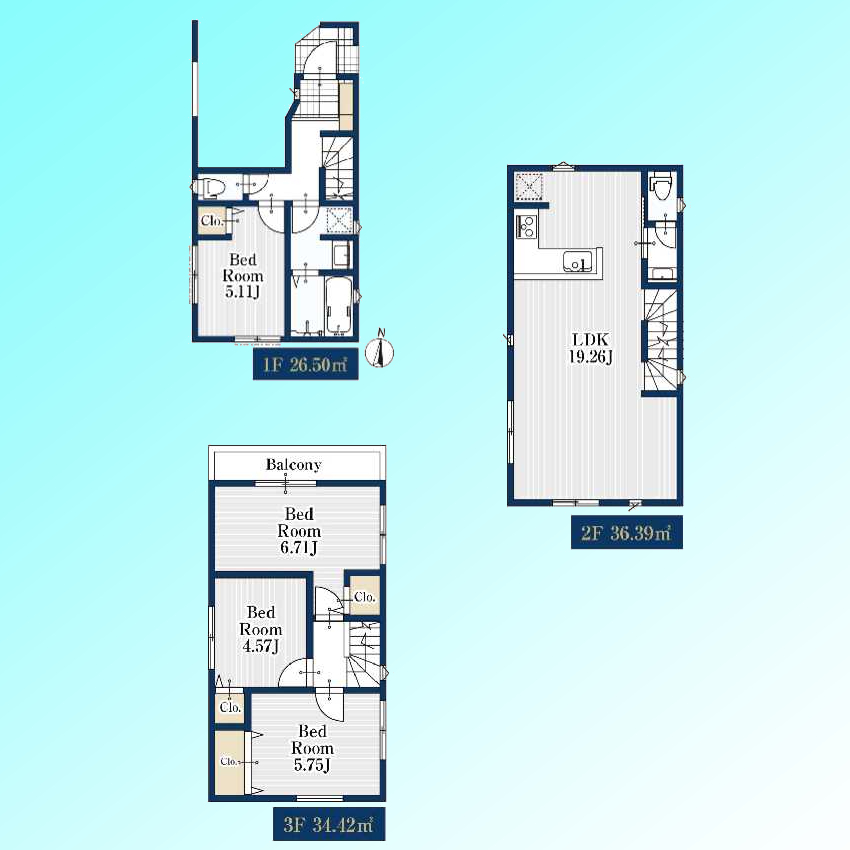 | 土地面積 | 53.06m² ~ 53.25m² 公簿 | ||