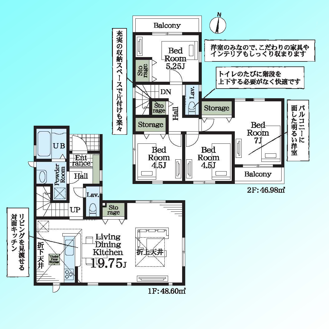 | 間取 | 4LDK (LDK19.75帖、洋室4.5帖、洋室4.5帖、洋室5.25帖、洋室7帖) | ||