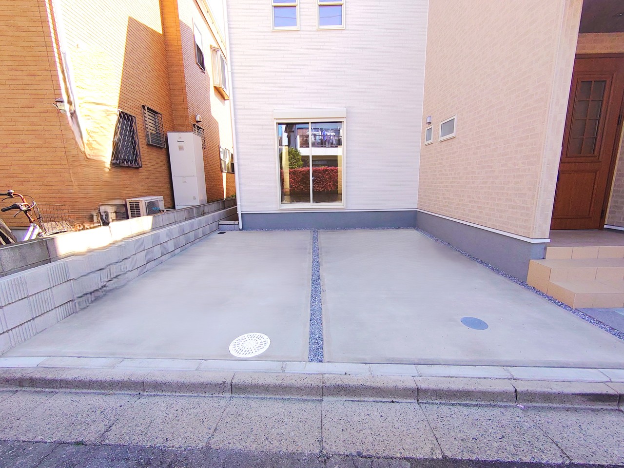 駐車場は2台まで駐車可能。マイカーの車幅もお確かめください。