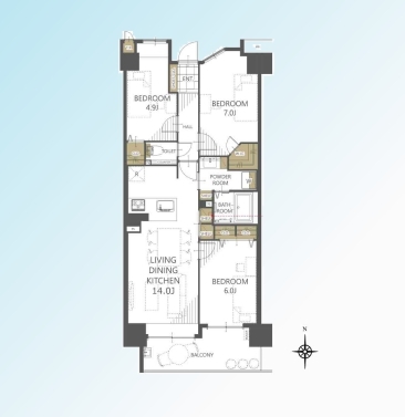 | 間取 | 3LDK (LDK14帖、洋室4.9帖、洋室7帖、洋室6帖) | ||