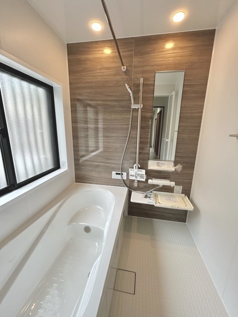 その日の疲れをゆっくりと落としてくれる場所、お子様との大事なひと時を楽しくしてくれる場所。曲線美も感じられるくつろぎのバスタブは、半身浴も楽しめる居心地の良さ。