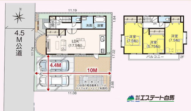 | 間取 | 3LDK (LDK17.5帖、洋室7.5帖、洋室5.7帖、洋室7.5帖) | ||