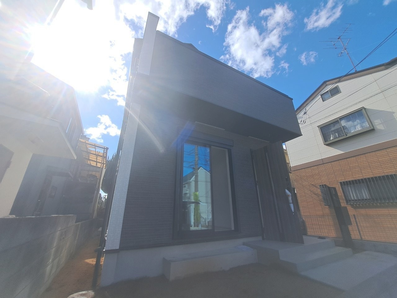 周辺の街並みの中で適度な主張、生活に溶け込むシンプルなデザインの外観が魅力の一戸建です。