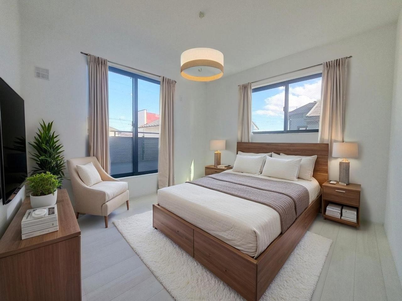 洋室はモダンなデザインと機能性を備え、快適な生活空間に。明るい窓から差し込む自然光が広々とした空間をさらに明るく開放的に感じさせます。
