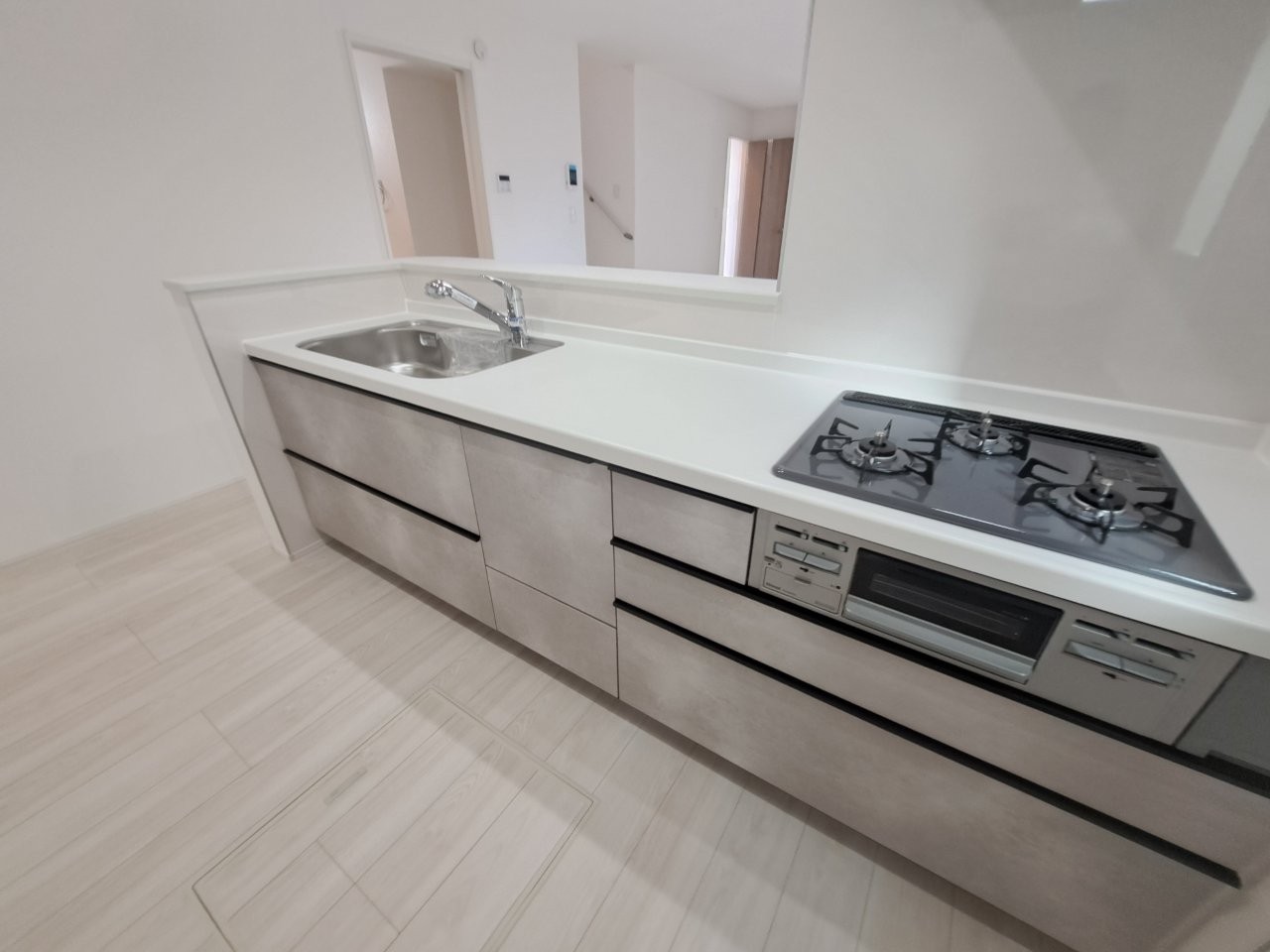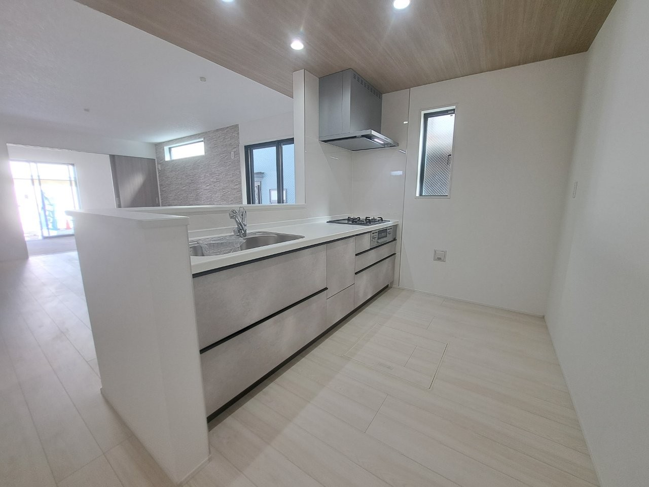 カウンターキッチンならではの開放的な見通し、全体が見渡せることでご家族の団欒スペースもより明るく笑顔が溢れる空間となります。
