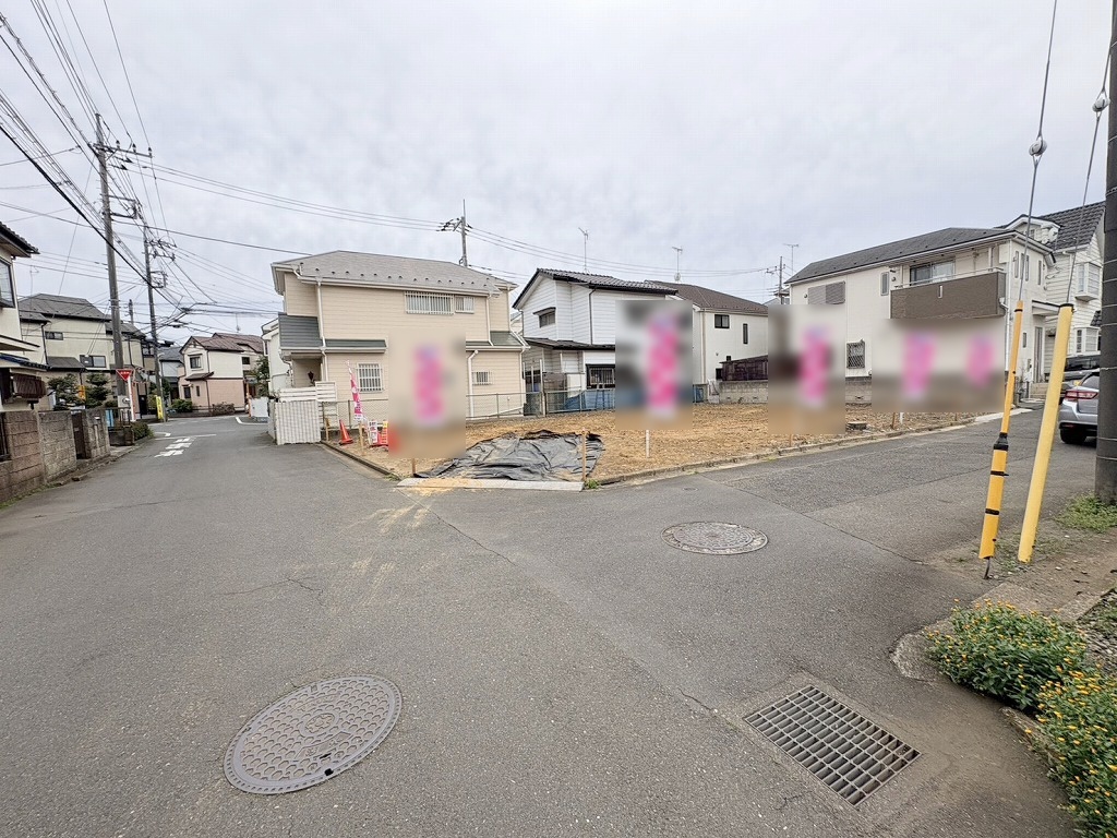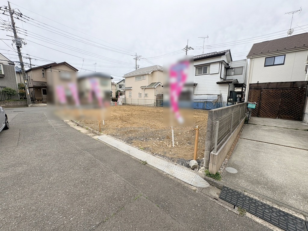 駅徒歩15分。北東、南東角地で通風良好。土地面積約106.16平米(約32.11坪)。コンビニ、幼稚園徒歩約6分、保育園徒歩約7分。2路線2駅利用可