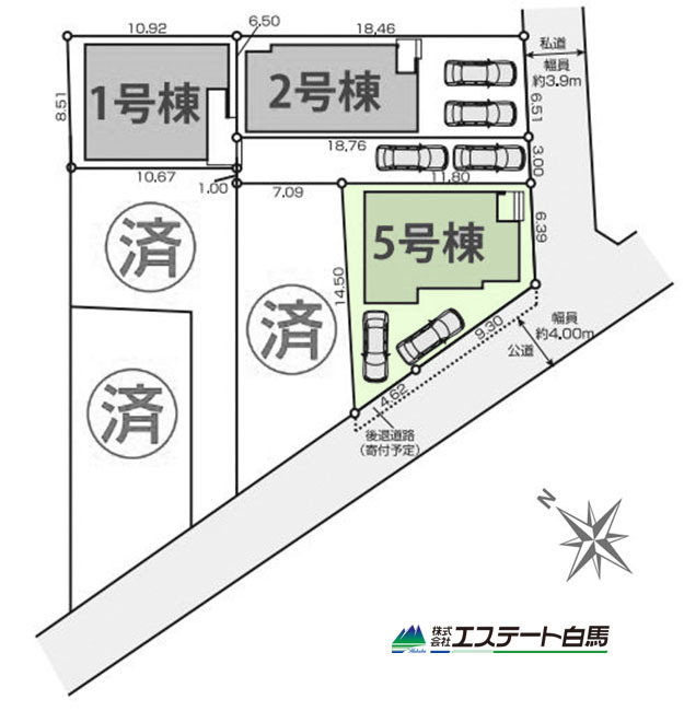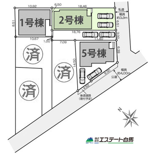 | 権利種類 | 所有権 | 接道 | 南西側4M公道に接道 南東側3.9M私道に接道 |