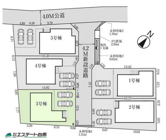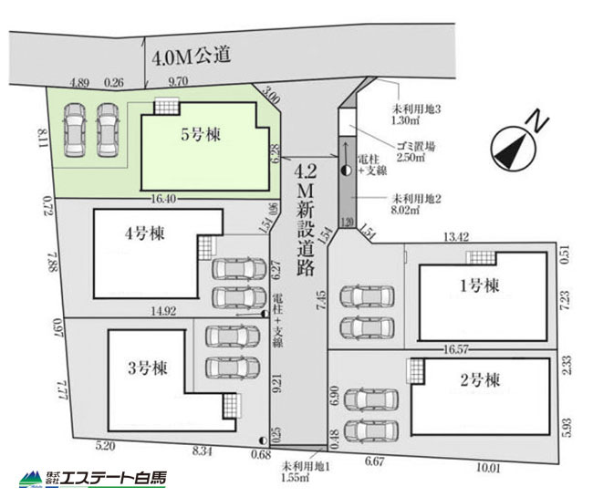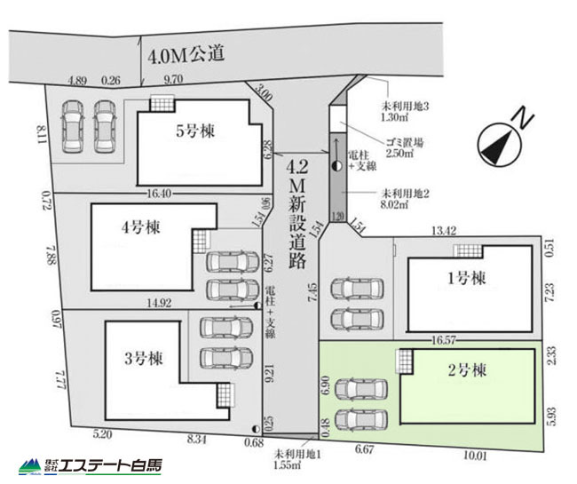 5号棟 前面道路は広く、駐車がしやすいです。駐車スペース2台分ございます。 2026/04/03m