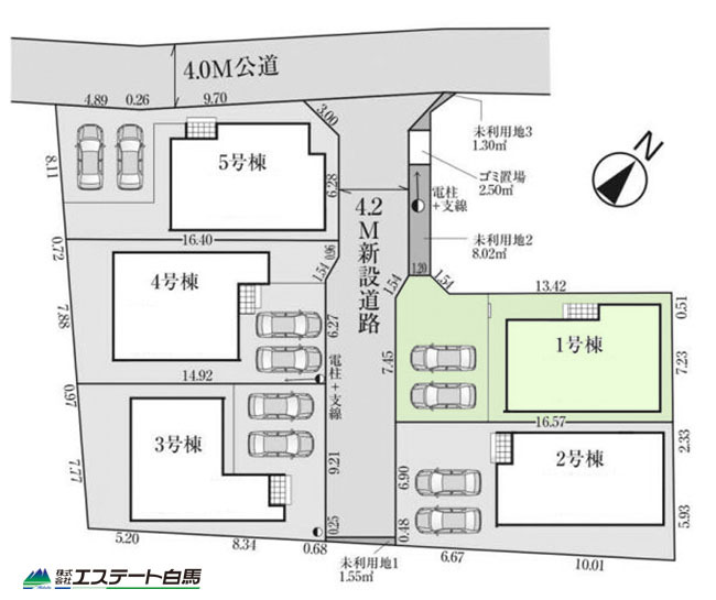 1号棟 前面道路は広く、駐車がしやすいです。駐車スペース2台分ございます。 2026/04/03m