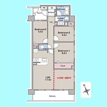 | 間取 | 4LDK (LDK17.9帖、洋室6帖、洋室5帖、洋室4.5帖) | ||