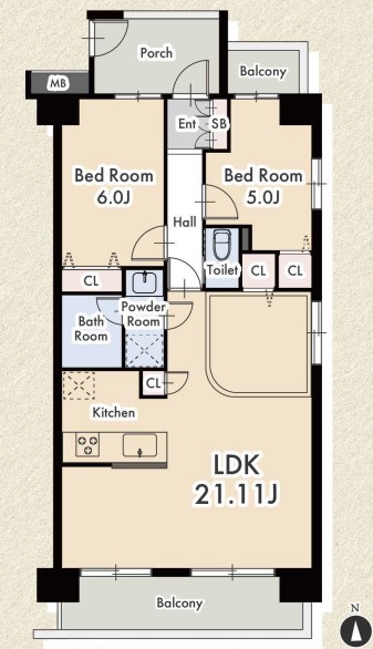 | 間取 | 2LDK (LDK21.11帖、洋室6.0帖、洋室5.0帖) | ||