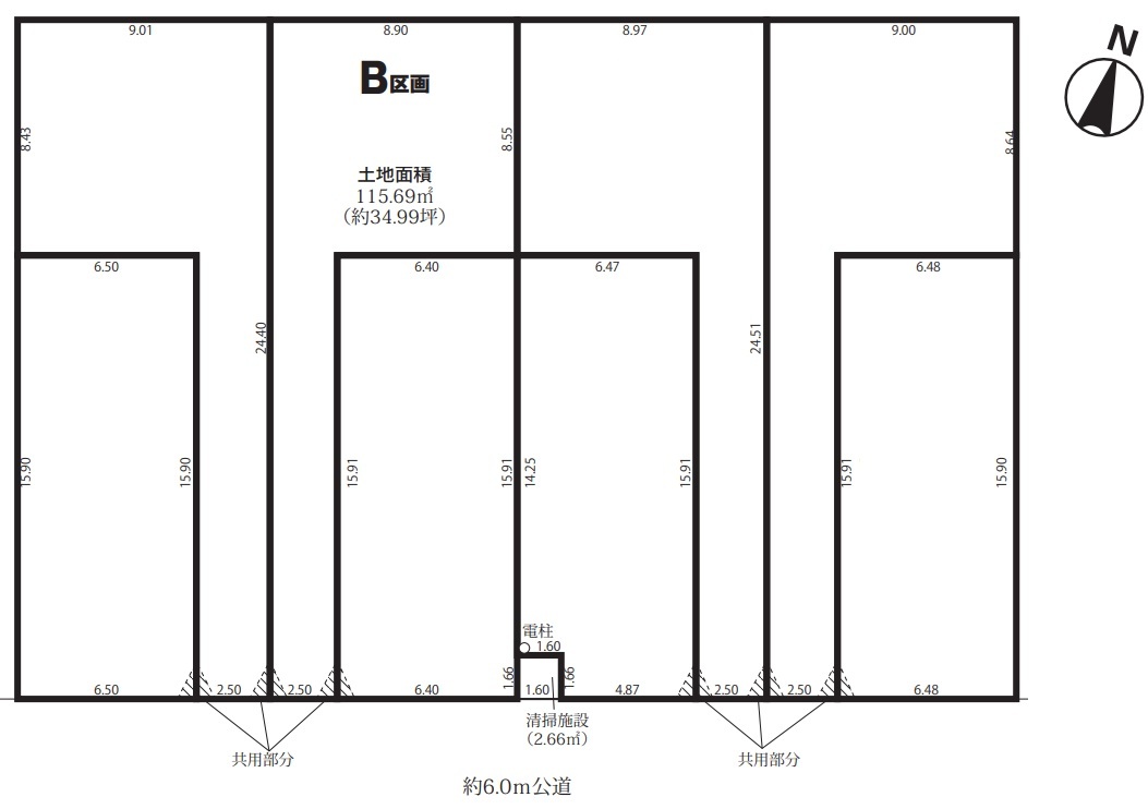 | 土地面積 | 115.69m² 公簿 (路地状敷地面積約40平米含む) | ||