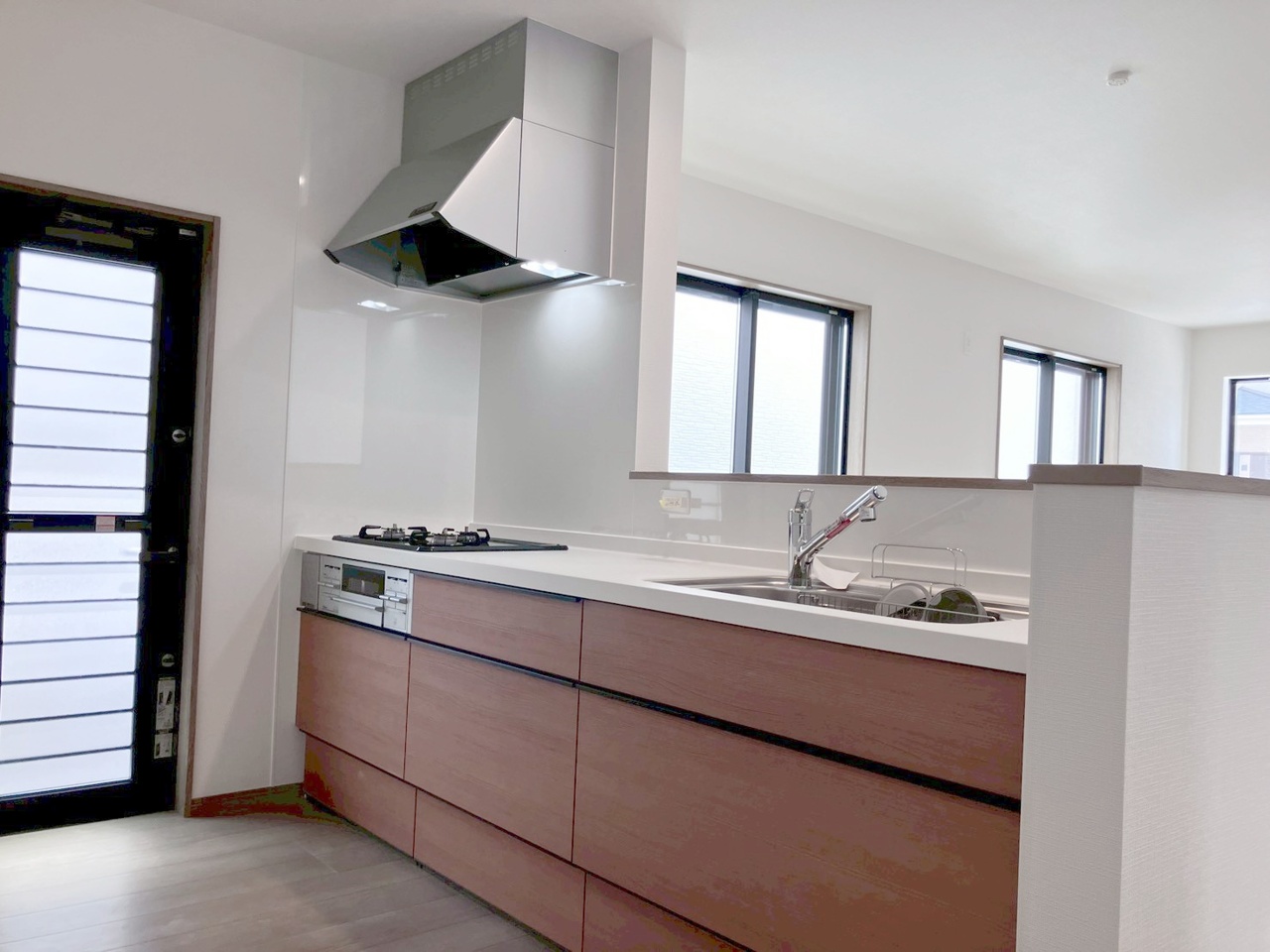 カウンターキッチンならではの開放的な見通し、全体が見渡せることでご家族の団欒スペースもより明るく笑顔が溢れる空間となります。