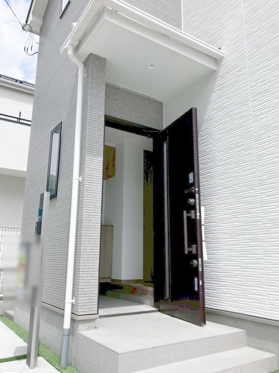 玄関は家の第一印象を左右する重要な場所。ほどよい広さとスタイリッシュな色遣いが印象的です。