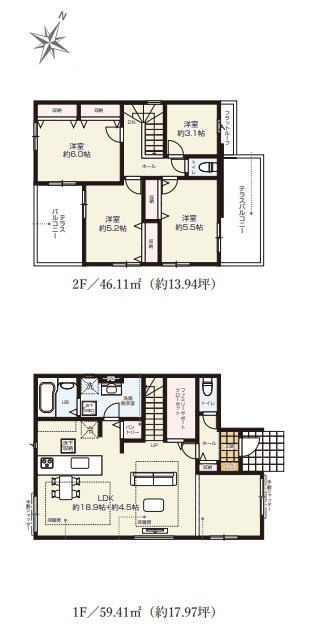| 間取 | 4LDK (LDK23.4帖、洋室6帖、洋室5.5帖、洋室5.2帖、洋室3.1帖) | ||