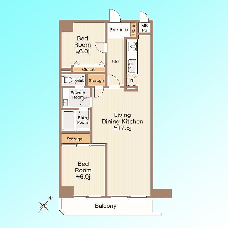 | 間取 | 2LDK (LDK17.5帖、洋室6帖、洋室6帖) | ||