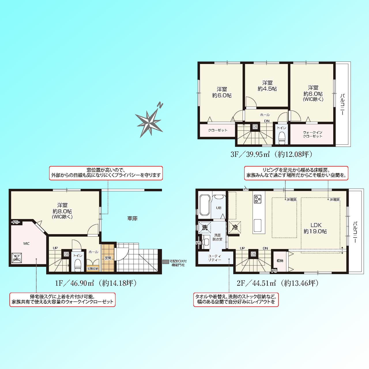 | 間取 | 4LDK (LDK19帖、洋室8帖、洋室6帖、洋室6帖、洋室4.5帖) | ||