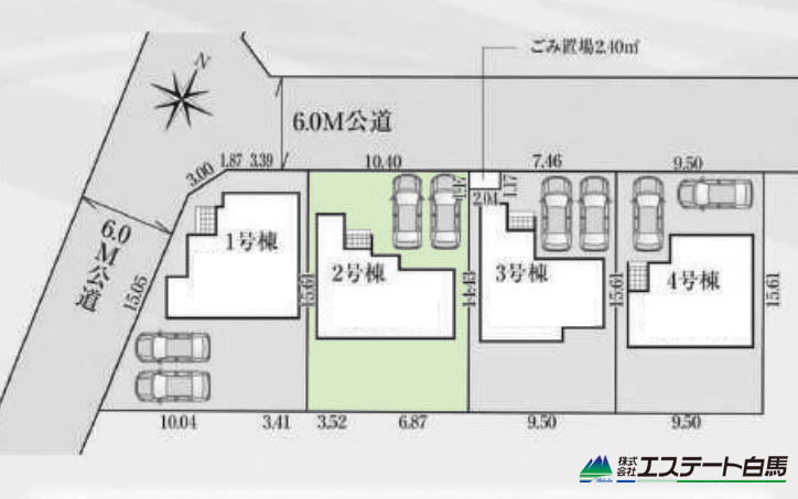 - 全4棟の分譲地、前面道路幅員6mあり開放感あります、カースペース2台可能です、お気軽にお問い合わせ下さい、