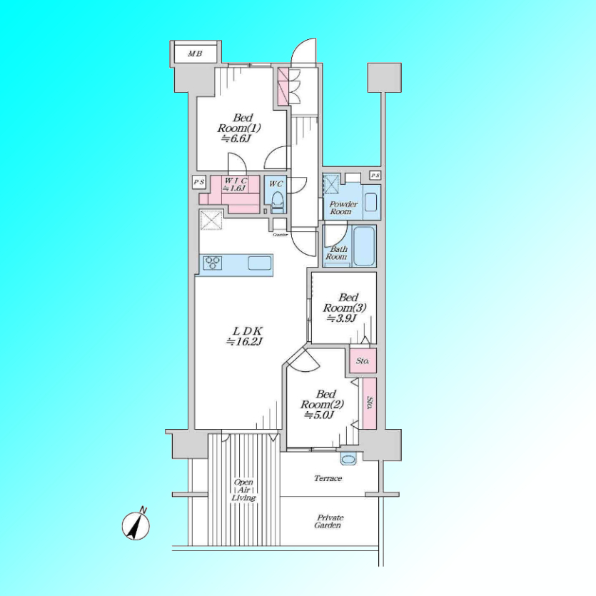 | 間取 | 3LDK (LDK16.2帖、洋室6.6帖、洋室5帖、洋室3.9帖) | ||