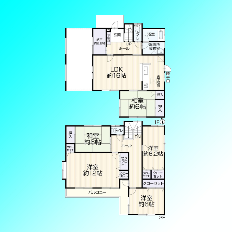 | 間取 | 5SLDK (LDK16帖、和室6帖、洋室6帖、和室6帖、洋室6.2帖、洋室12帖、S2.2帖) | ||