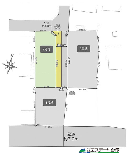 | 接道 | 北側4M公道に接道 南側7.2M公道に接道 |