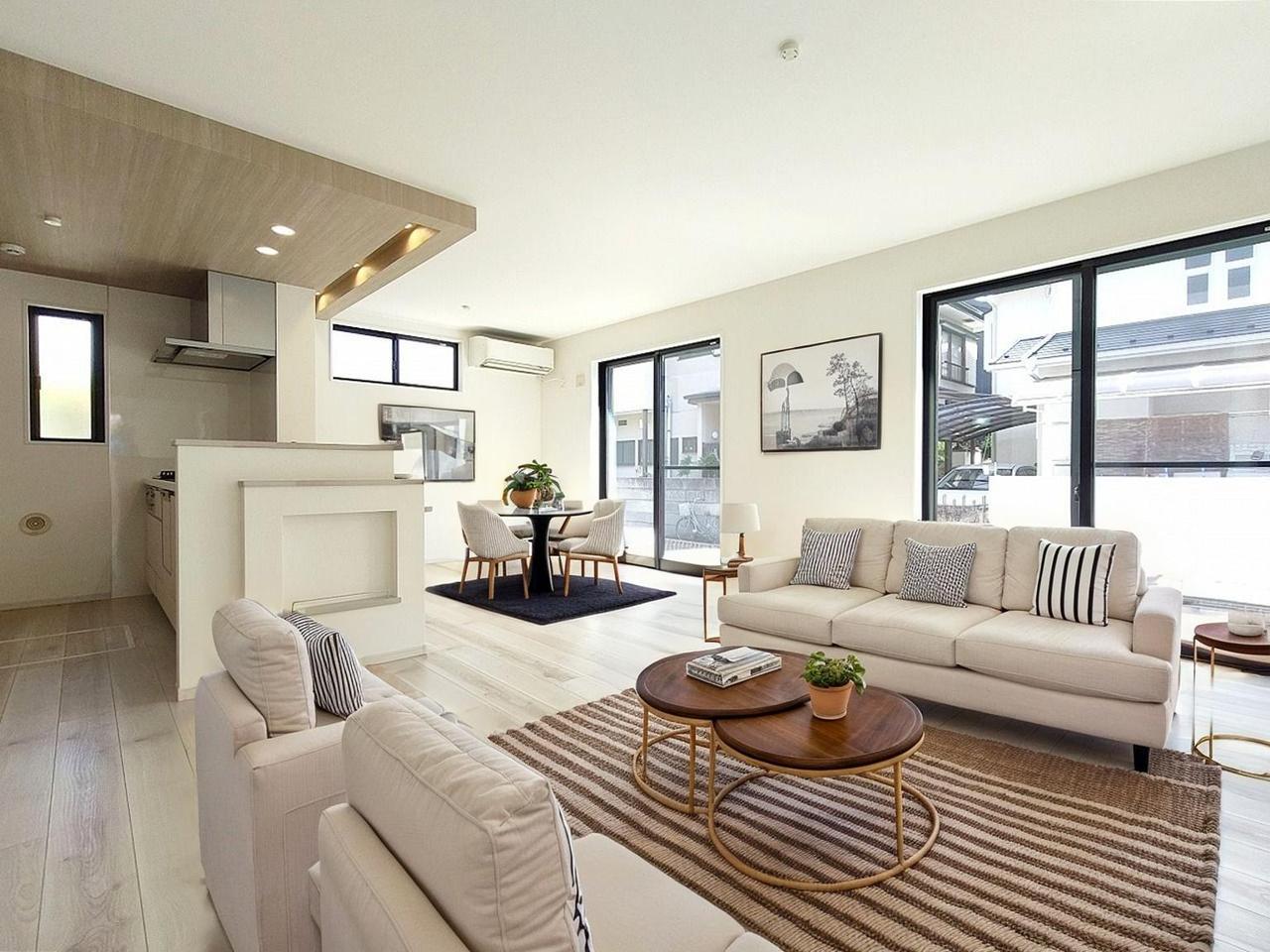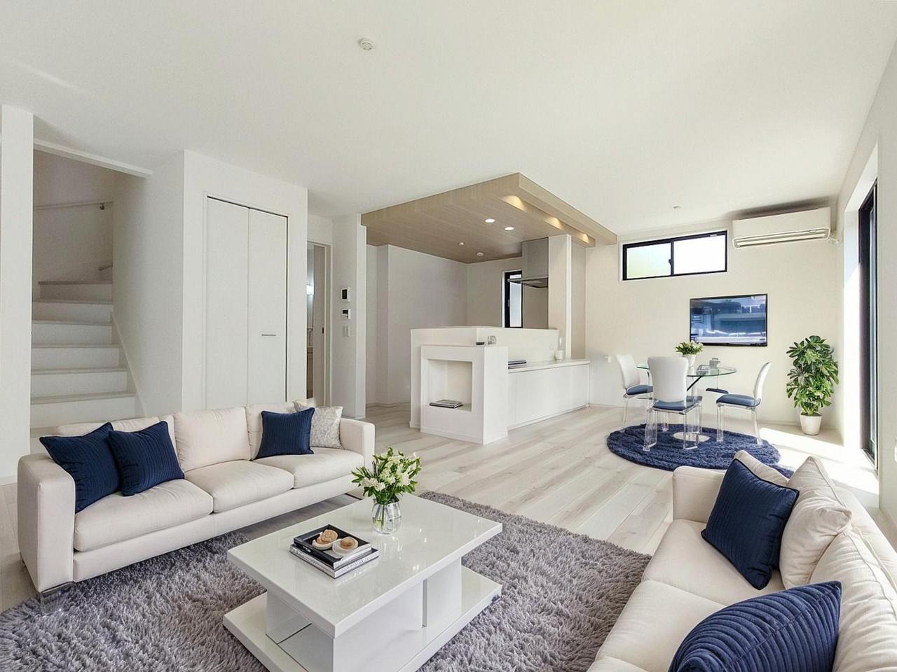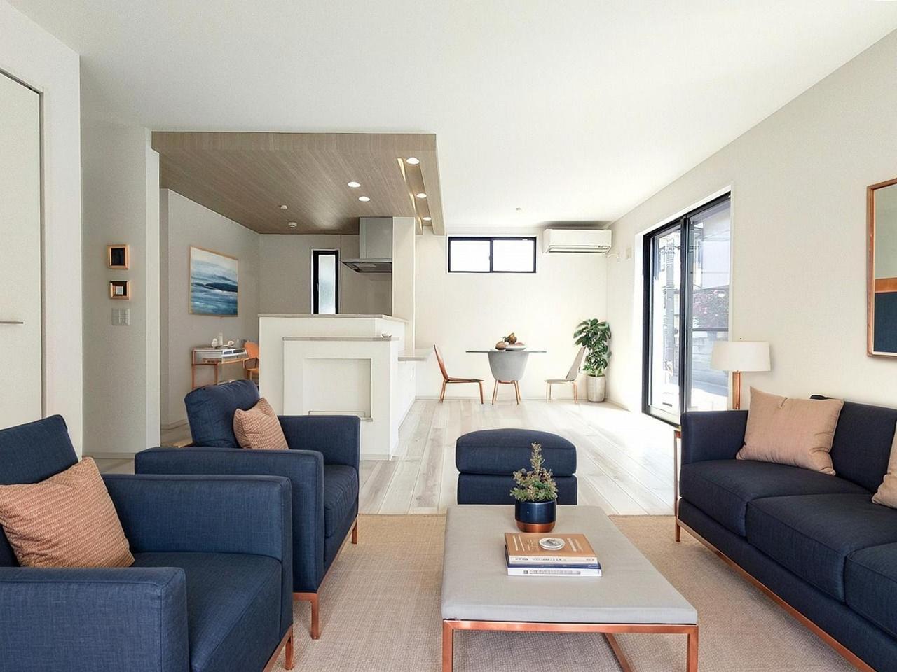 お家の中心となる大きな空間がご家族のコミュニケーションスペースになる筈です。 ※CGで家具を配置しております。家具配置のイメージにご覧ください。