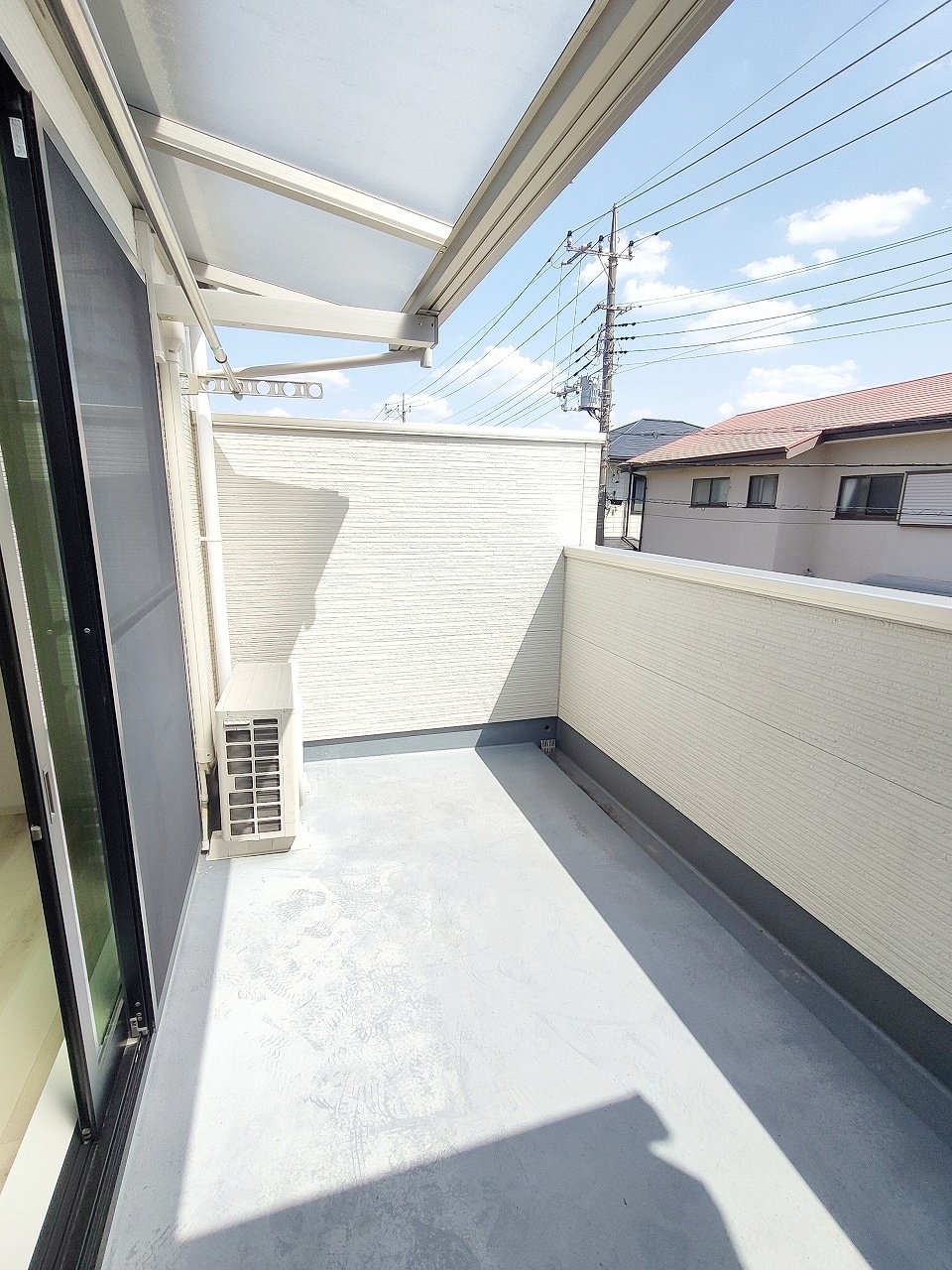 2階のバルコニーにはオプションで屋根が付いています! 急な雨にも対応出来ますね。
