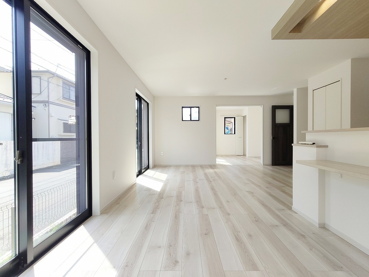ご家族みんながゆったりくつろげる広々リビング。 ※CGで家具を配置しております。家具配置のイメージにご覧ください。