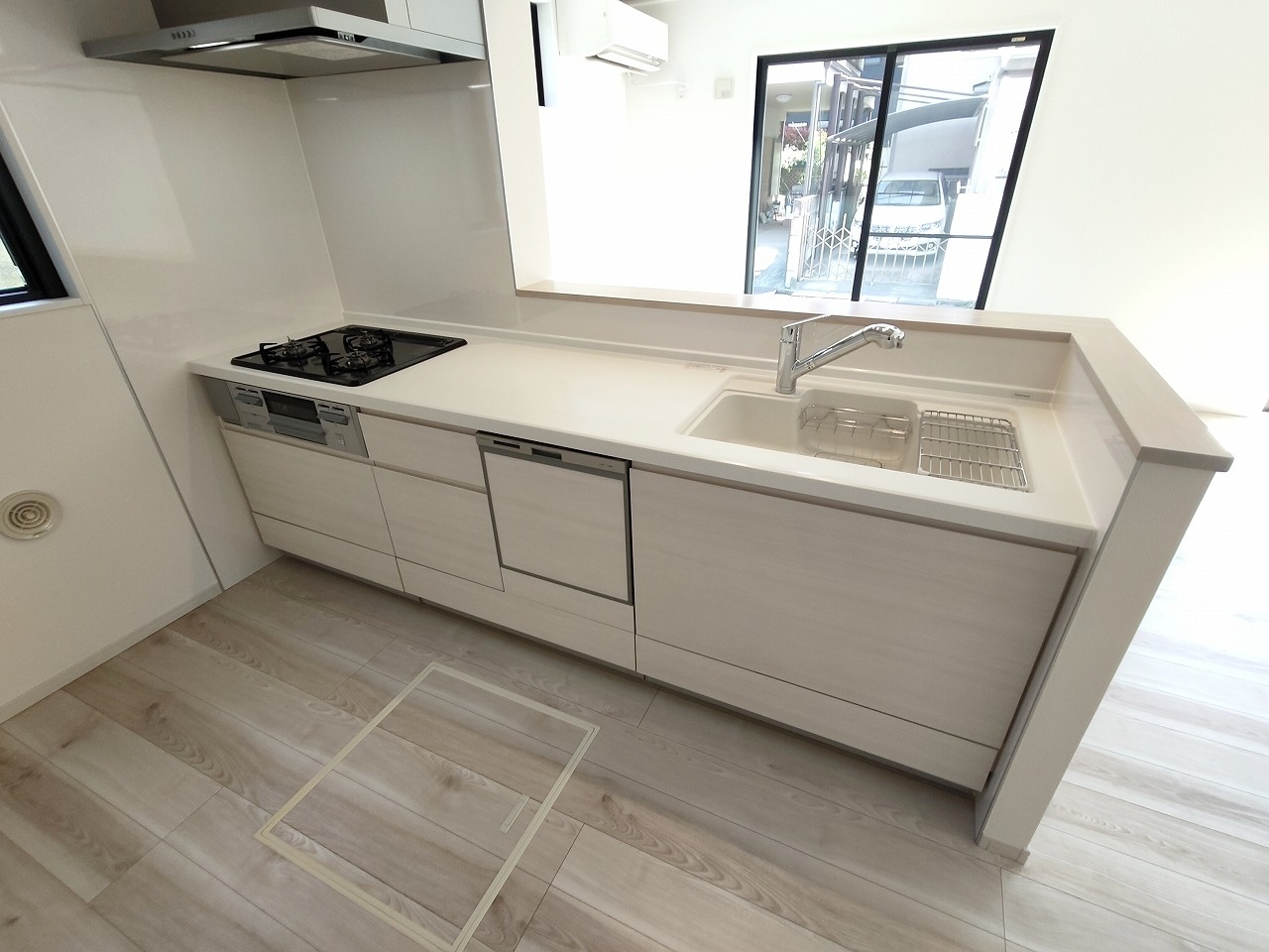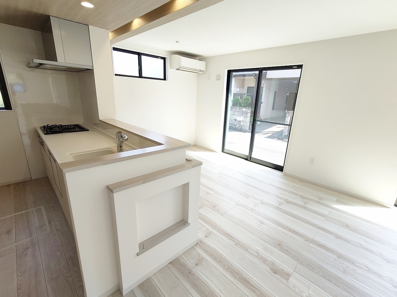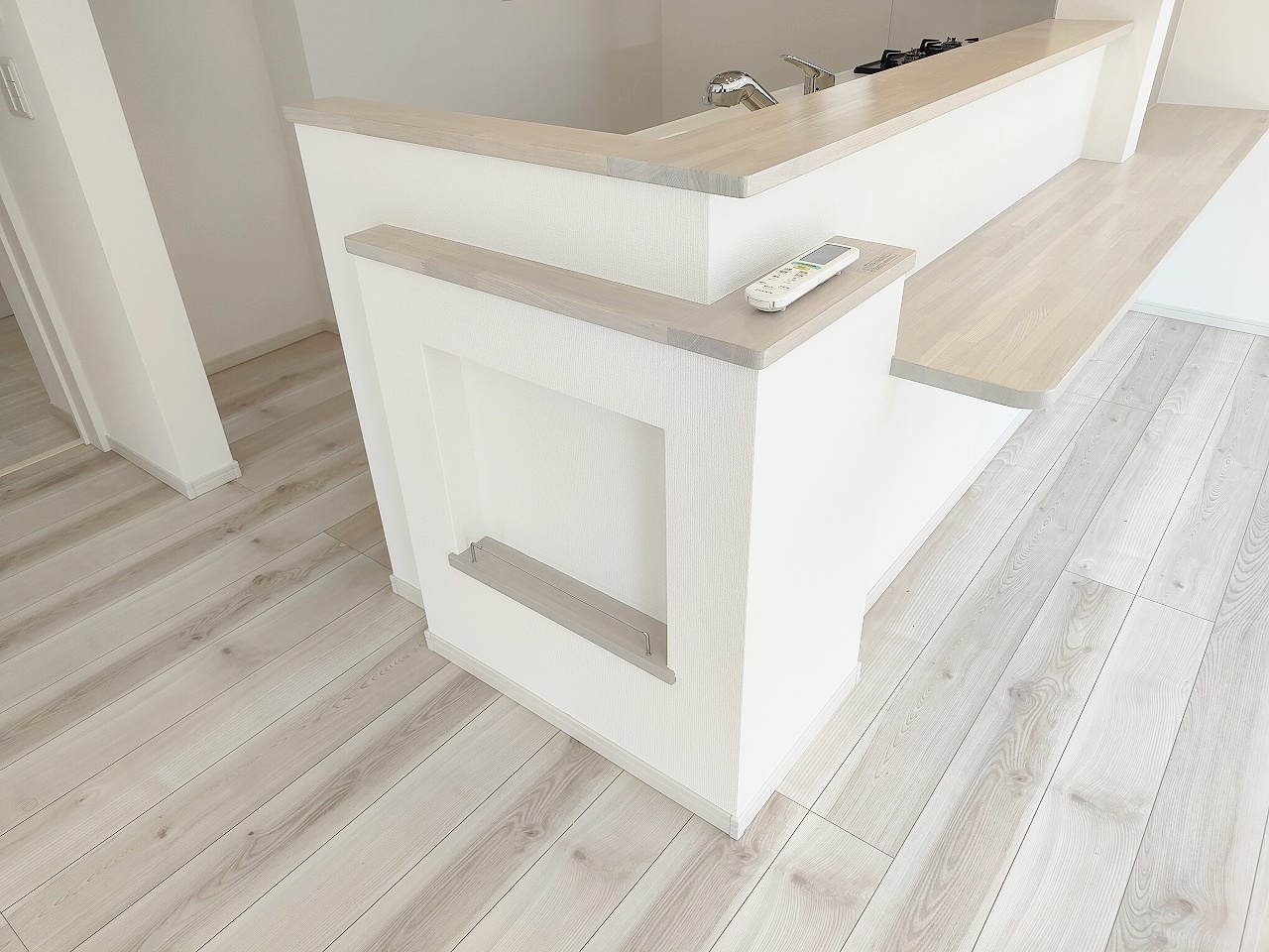 リビングで遊ぶお子様を見守りながらお料理ができる対面キッチン。