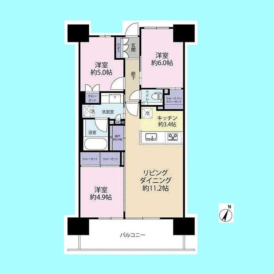 | 間取 | 3LDK (LDK14.6帖、洋室6帖、洋室5帖、洋室4.9帖) | ||
