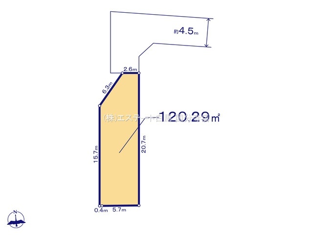 | 土地面積 | 120.29m² 公簿 (私道160m²別に有、私道持分比率:1/12) | ||