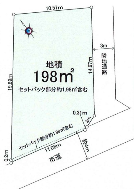| 土地面積 | 198m² 公簿 (セットバック1.98m²) | ||