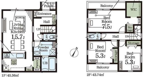 | 間取 | 3LDK (LDK15.7帖、洋室7.5帖、洋室5.3帖、洋室5.3帖) | ||