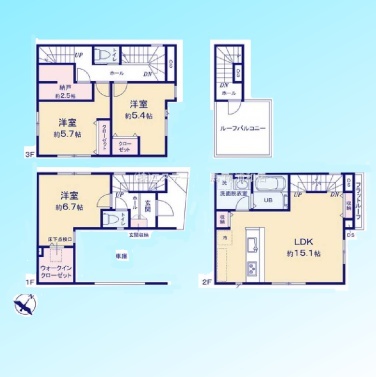 | 間取 | 3SLDK (LDK15.1帖、洋室6.7帖、洋室5.7帖、洋室5.4帖、S2.5帖) | ||