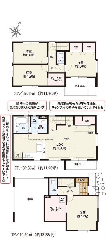| 間取 | 4LDK+2WIC (LDK16.8帖、洋室7.2帖、洋室5.4帖、洋室5.0帖、洋室4.9帖) | ||