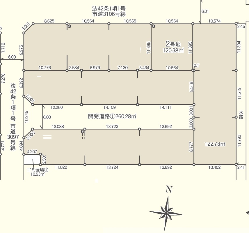 | 権利種類 | 所有権 | 接道 | 北側6M公道に10.5M接道 |