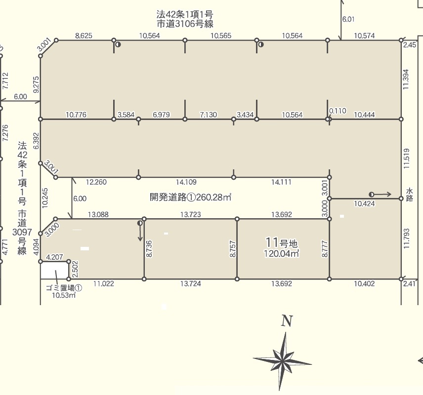 | 権利種類 | 所有権 | 接道 | 北側6M私道に13.6M接道 |