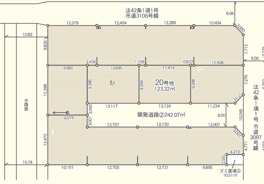 | 権利種類 | 所有権 | 接道 | 南側6M私道に13.12M接道 |