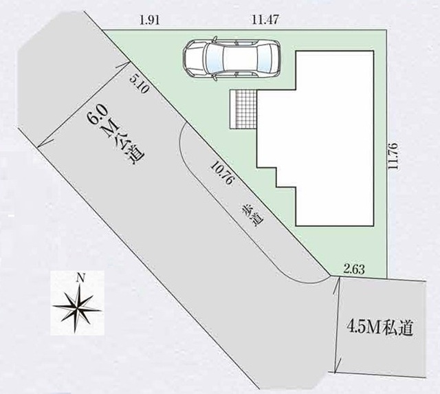 | 接道 | 南西側6M公道に接道 南側4.5M私道に接道 |