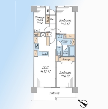 | 間取 | 2SLDK (LDK12.9帖、洋室5.6帖、洋室6帖、S4帖) | ||