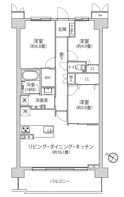 | バルコニー面積 | 11.41m² 南西向き | ||