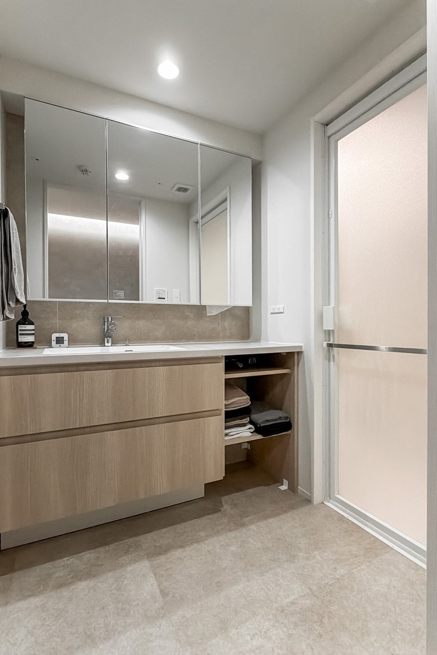 ゆとりの洗面スペースで朝の身支度もスムーズに!