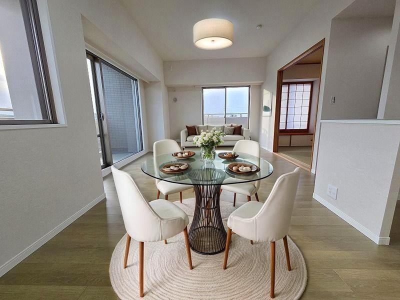 ゆとりのあるサイズのリビングダイニング。 お食事スペースと、お寛ぎ空間を分けてご利用可能。 少し大きめのソファーを置いて、 一家団欒なお時間をご共有ください。