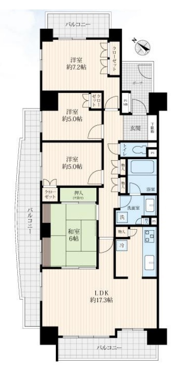 | バルコニー面積 | 26.18m² 南西向き | ||