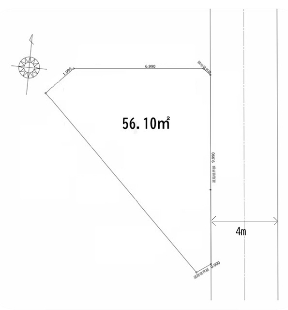 | 土地面積 | 56.1m² 公簿 (私道15.85m²別に有、私道持分比率:1/3) | ||