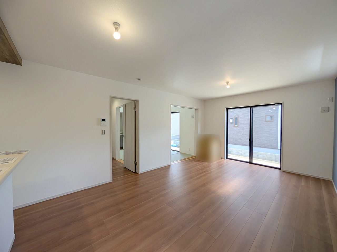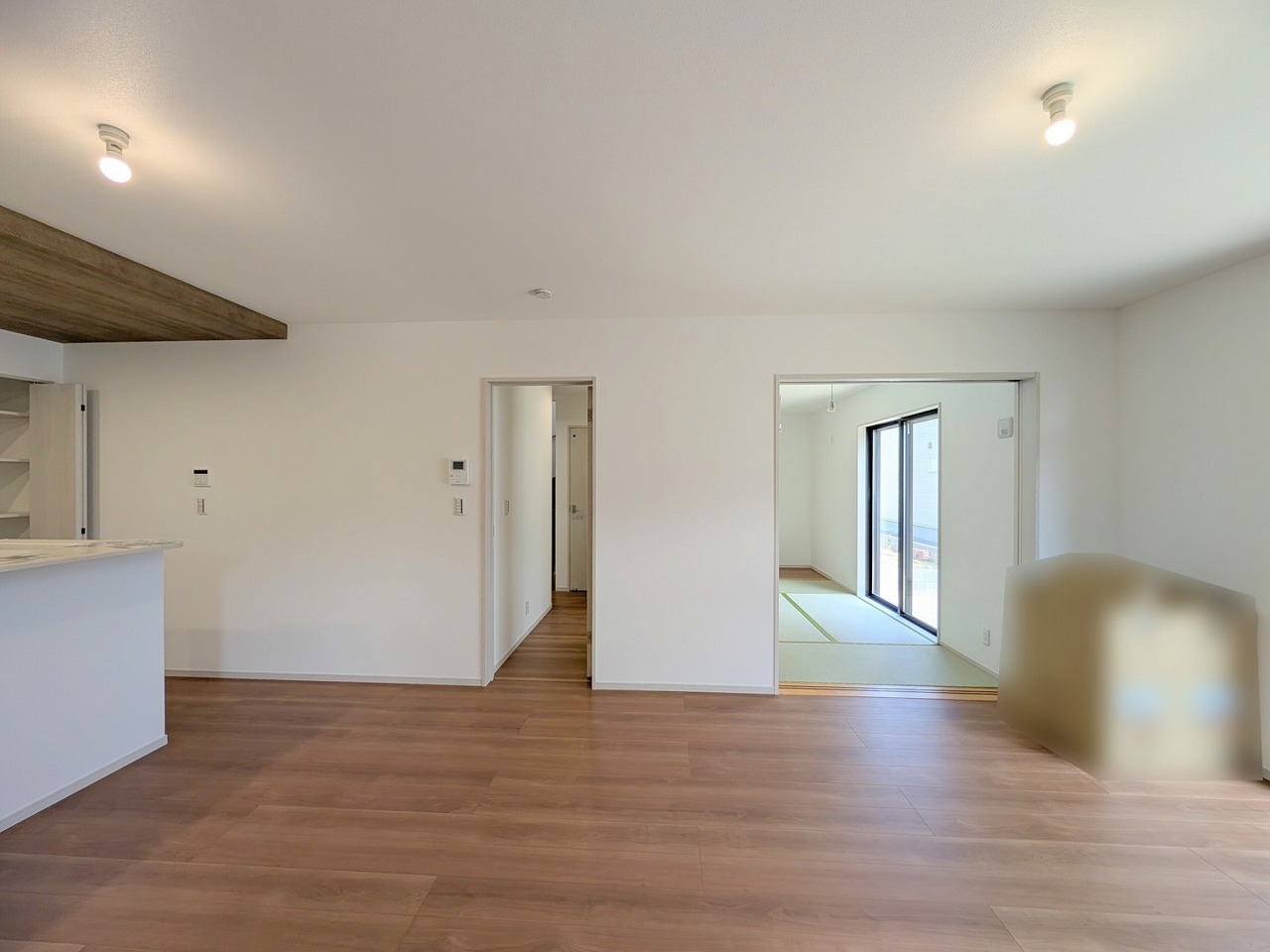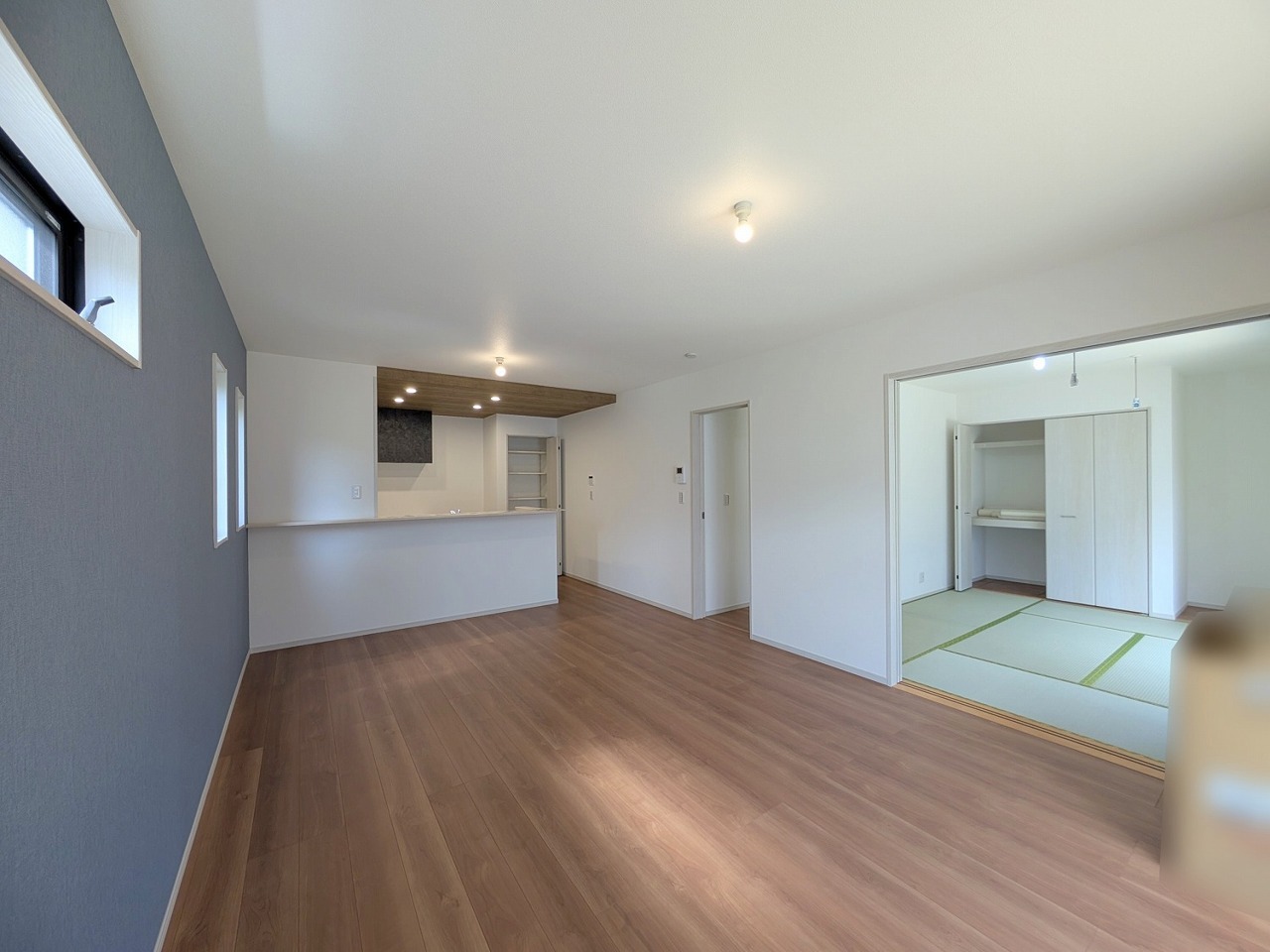 LDK+隣接和室、開放すれば広々空間に。おもてなしスペースにもどうぞ。