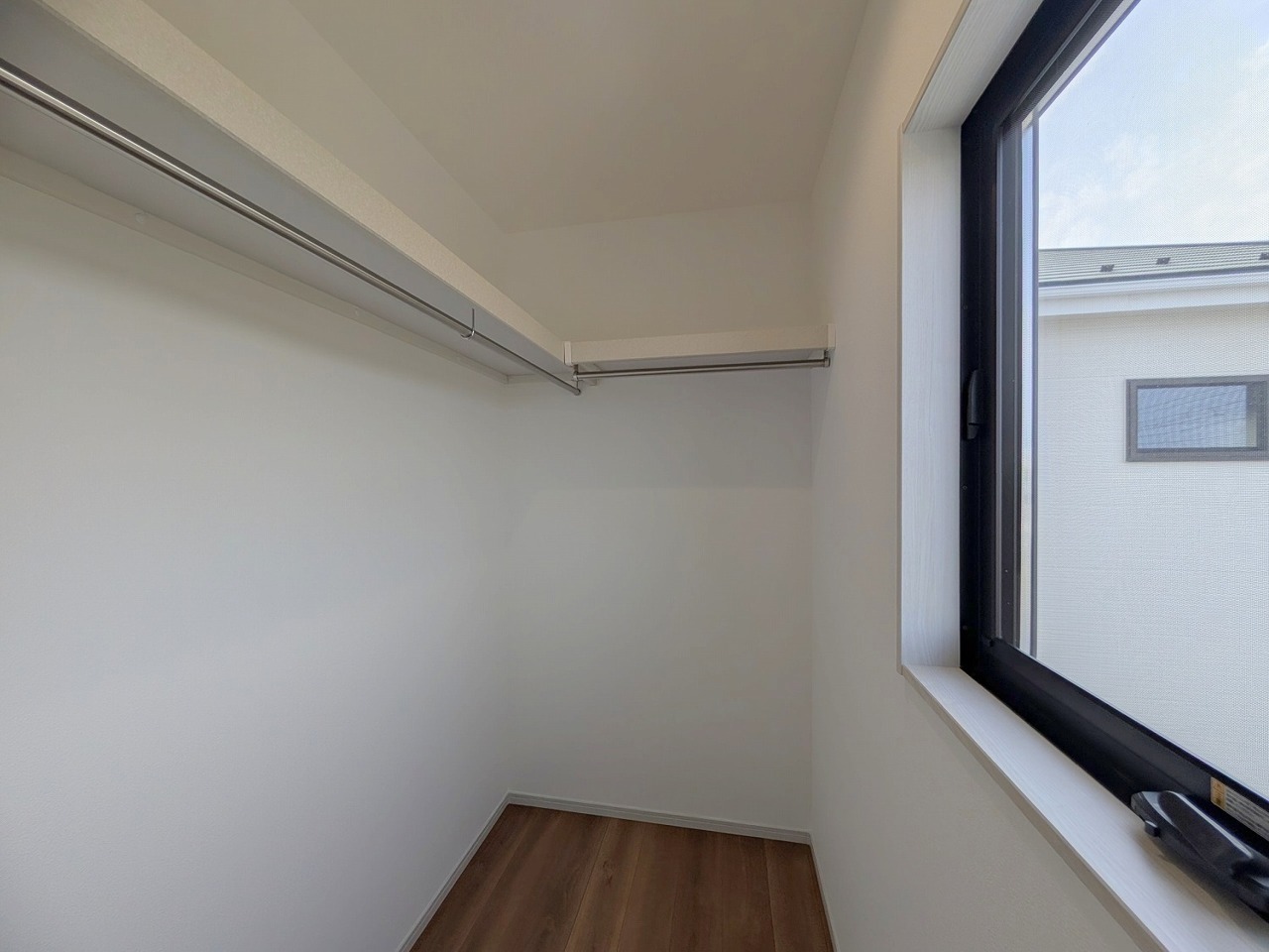 季節物の衣類もスッキリ収納できる、ウォークインクローゼット。