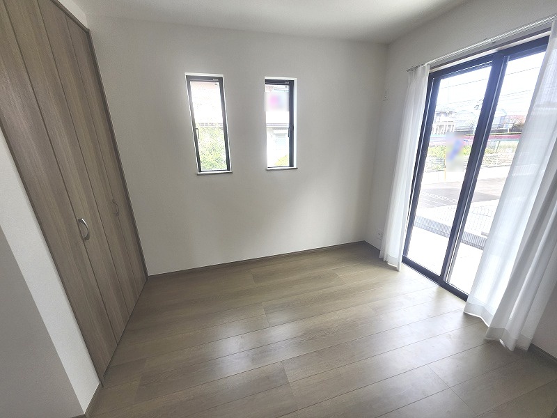 E号棟 洋室はモダンなデザインと機能性を備え、快適な生活空間に。明るい窓から差し込む自然光が広々とした空間をさらに明るく開放的に感じさせます。